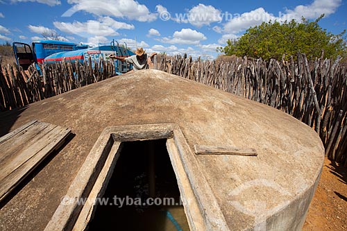 Subject: Cistern of house in rural zone of Petrolina being supplied with water brought by water truck of Operation Pipa / Place: Petrolina city - Pernambuco state (PE) - Brazil / Date: 06/2012