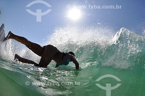 Subject: Woman surfing in Sao Conrado Beach - Fernanda Daichman (Realeased 92) / Place: Sao Conrado neighborhood - Rio de Janeiro city - Rio de Janeiro state (RJ) - Brazil / Date: 12/2010