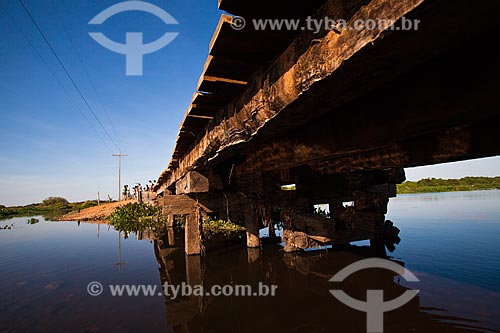 [+] bridge, [+] highway, [+] infrastructure, [+] Midwest Region, [+] MT-060, [+] reflection, [+] reflex, [+] river, [+] road transport, [+] road transportation, [+] Transpantaneira, [+] Transpantaneira Highway, [+] transport, [+] transportation, [+] water mirror, [+] wooden bridge, [+] Pantanal