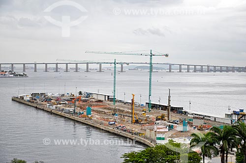 [+] Amanha Museum, [+] bay, [+] bridge, [+] building, [+] capital, [+] civil construction, [+] construction, [+] construction site, [+] crane, [+] Guanabara Bay, [+] landform, [+] Maua Square, [+] metal structure, [+] Museum of Tomorrow, [+] Pier Maua, [+] portuary zone, [+] Presidente Costa e Silva Bridge, [+] public work, [+] Rio Niteroi Bridge, [+] Rio-Niteroi Bridge, [+] sea, [+] Southeast Region