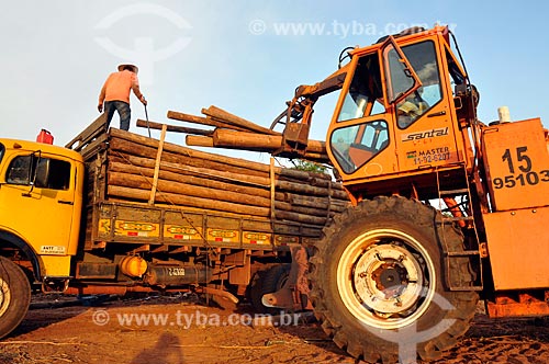Subject: Tractor catching trunks of Eucalyptus citriodora (Corymbia citriodora) / Place: Mirassol city - Sao Paulo state (SP) - Brazil / Date: 11/2012