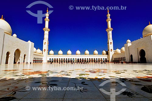 Subject: Courtyard of Abu Dhabi Grand Mosque - Sheik Zayed Bin Sultan Al Nathyan Mosque - the founder of the United Arab Emirates / Place: Abu Dhabi - United Arab Emirates - Asia / Date: 03/2012