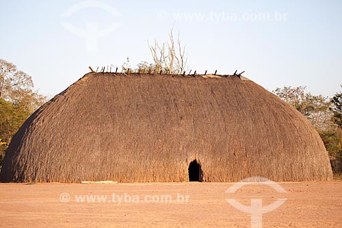 Subject: Maloca or Oca, typical habitation of the indigenous people of Xingu, covered with straw or thatch - this years ceremony in honor of the anthropologist Darcy Ribeiro - Photo Licensed (Released 94) - INCREASE OF 100% OF THE VALUE OF TABLE / Place: Gaucha do Norte city - Mato Grosso state (MT) - Brazil