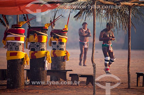 Subject: Kuarup, the name given by the indigenous tribes of the Xingu, to the noble tree whose trunk is cut and decorated to represent the dead who will be honored at the ritual of the same name - this years ceremony in honor of the anthropologist Darcy Ribe / Place: Gaucha do Norte city - Mato Grosso state (MT) - Brazil