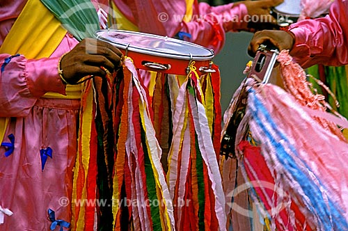 Subject: Detail of a man playing the the tambourine in congada in Olympia city / Place: Olimpia city - Sao Paulo state (SP) - Brazil / Date: 1995