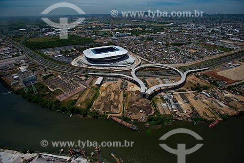 Subject: Aerial view of Gremio Arena (2012) with the viaduct that will connect the cities of Porto Alegre and Canoas / Place: Humaita neighborhood - Porto Alegre city - Rio Grande do Sul state (RS) - Brazil / Date: 12/2012