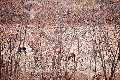 Subject: Goats (Capra hircus aegagrus) without pasture during the dry season / Place: Canaa - Pernambuco state (PE) - Brazil / Date: 01/2013