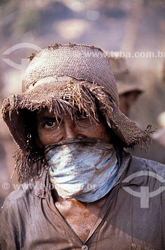 Subject: Worker in the mining of Serra Pelada - considered the largest gold mine at open pit of world in the 80s / Place: Serra Pelada District - Curionopolis city - Para state (PA) - Brazil / Date: Década de 80