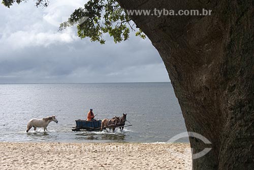 Subject: Wagon with horses on the banks of the Patos Lagoon / Place: Sao Lourenco do Sul city - Rio Grande do Sul state (RS) - Brazil / Date: 2012