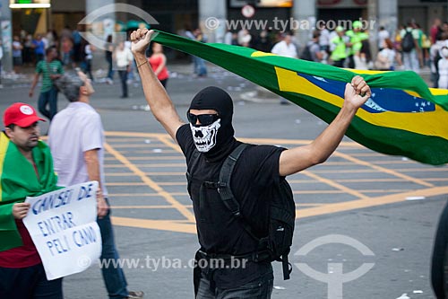 Subject: Protester with his face covered during the demonstration of the Free Pass Movement in the Presidente Vargas Avenue / Place: City center neighborhood - Rio de Janeiro city - Rio de Janeiro state (RJ) - Brazil / Date: 06/2013