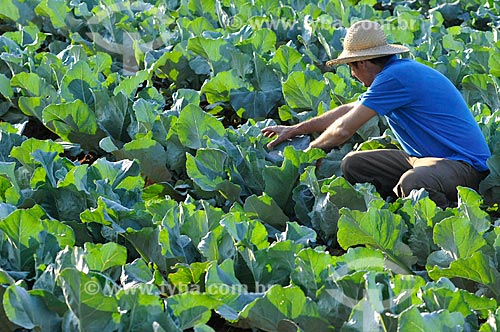 Subject: Rural worker at cauliflower planting / Place: Sao Jose do Rio Preto city - Sao Paulo state (SP) - Brazil / Date: 05/2013
