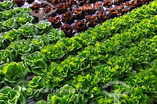 Subject: Salanova Lettuce and Salanova Purple Lettuce planting with hydroponic technique / Place: Sao Jose do Rio Preto city - Sao Paulo state (SP) - Brazil / Date: 05/2013