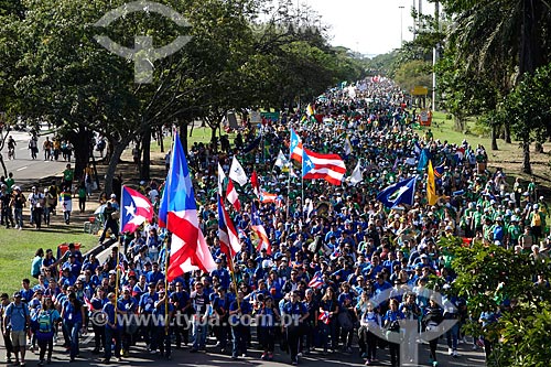 Subject: Pilgrims with Puerto Rico flags of World Youth Day (WYD) through the Flamengo Landfill towards Copacabana / Place: Flamengo neighborhood - Rio de Janeiro city - Rio de Janeiro state (RJ) - Brazil / Date: 07/2013