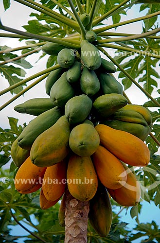 Subject: Detail of papaya still in the papaya tree / Place: Luis Eduardo Magalhaes city - Bahia state (BA) - Brazil / Date: 07/2013