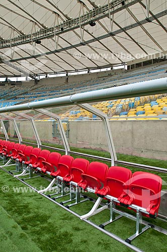 Subject: Chairs on the banks of field at Journalist Mario Filho Stadium - also known as Maracana / Place: Maracana neighborhood - Rio de Janeiro city - Rio de Janeiro state (RJ) - Brazil / Date: 05/2013