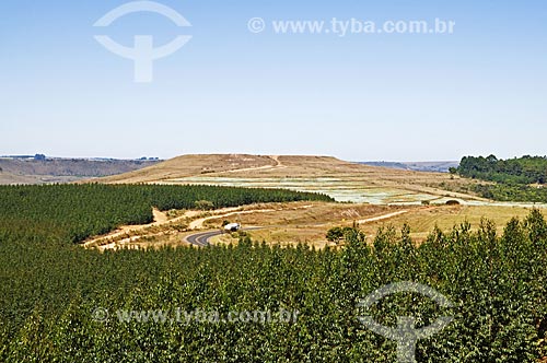 Subject: View of eucalyptus plantation area and phosphate mining from the road between Araxa to Tapira / Place: Araxa city - Minas Gerais state (MG) - Brazil / Date: 07/2013