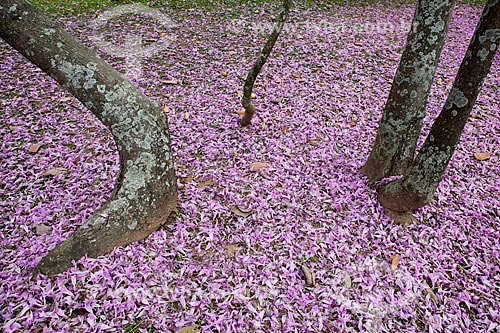 Subject: Flowers of Ipe-Rosa (Tabebuia heptaphylla) on the ground / Place: Flamengo neighborhood - Rio de Janeiro city - Rio de Janeiro state (RJ ) - Brazil / Date: 08/2013