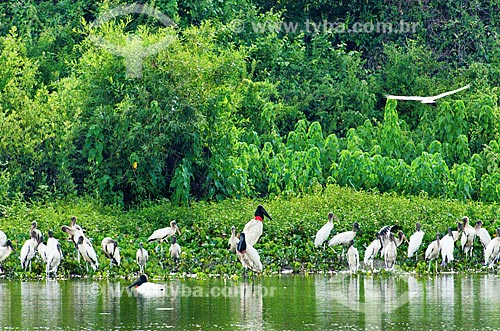 Subject: Wood Storks (Mycteria americana) - also known as Wood Ibis - and Jabirus (Jabiru mycteria) - Abobral River wetland / Place: Mato Grosso do Sul state (MS) - Brazil / Date: 11/2011