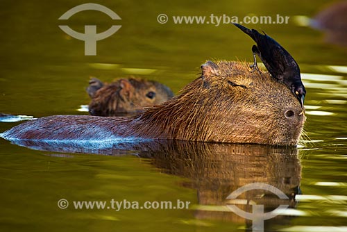[+] animal, [+] biome, [+] bird, [+] capybara, [+] environment, [+] fauna, [+] giant cowbird, [+] herbivorous, [+] Hydrochoerus hydrochaeris, [+] mammal, [+] Mato Grosso, [+] Midwest Region, [+] Pantanal, [+] Pantanal Matogrossense, [+] perched, [+] rodent, [+] symbiosis, [+] wild animal, [+] wildlife