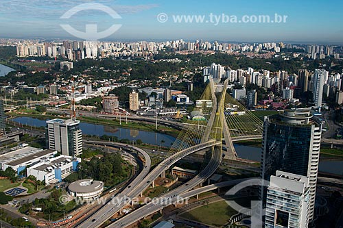 Subject: Aerial view of the end of Journalist Roberto Marinho Avenue and Cable-stayed bridge Octavio Frias de Oliveira / Place: Sao Paulo city - Sao Paulo state (SP) - Brazil / Date: 05/2013