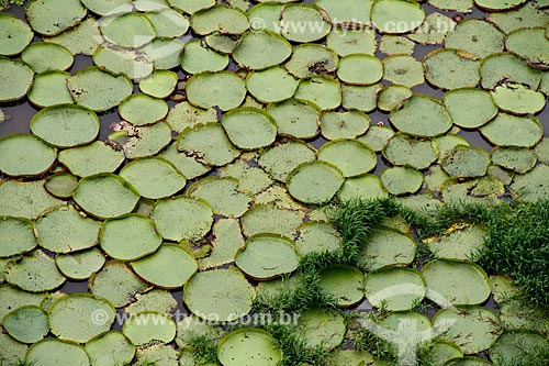 Subject: Concentration of Water lilies (Victoria amazonica) - also known as Amazon Water Lily or Giant Water Lily - on the banks of Madeira River near to Porto Velho city / Place: Porto Velho city - Rondonia state (RO) - Brazil / Date: 03/2012
