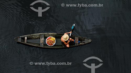 Subject: Riverine carrying a basin with Peach-palm fruit (Bactris gasipaes) / Place: Manacapuru city - Amazonas state (AM) - Brazil / Date: 03/2014