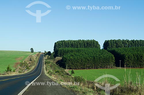 Subject: View of RS-536 Highway with plantation of eucalyptus / Place: Rio Grande do Sul state (RS) - Brazil / Date: 06/2012