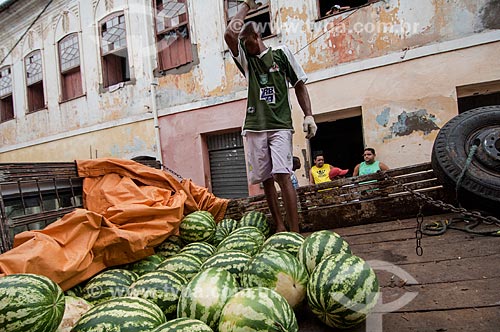 Subject: Worker unloading watermelons of truck in Cachoeira Municipal Market / Place: Cachoeira city - Bahia state (BA) - Brazil / Date: 12/2010