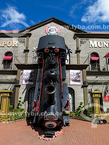 Subject: Facade of Mundo a Vapor (World Steam) theme park - that reconstructs the accident happened in Paris (1895), when a locomotive crossed the Montparnasse station / Place: Canela city - Rio Grande do Sul state (RS) - Brazil / Date: 04/2014
