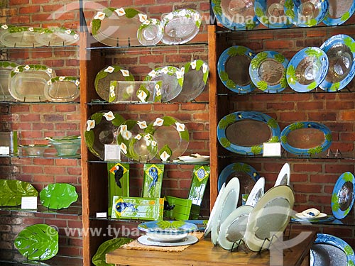 [+] business, [+] commerce, [+] craftsmanship, [+] craftwork, [+] fusing, [+] Gaucha Mountain Range, [+] glass, [+] glass fusing, [+] handicraft, [+] handmade, [+] kitchenware, [+] merchandise, [+] Rio Grande do Sul, [+] serving set, [+] South Region, [+] store, [+] tableware, [+] utensil