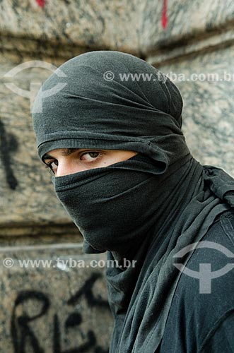 Subject: Black Bloc protester in front of the City Council of Rio de Janeiro - Movement Occupies Chamber Rio / Place: City center neighborhood - Rio de Janeiro city - Rio de Janeiro state (RJ) - Brazil / Date: 10/2013
