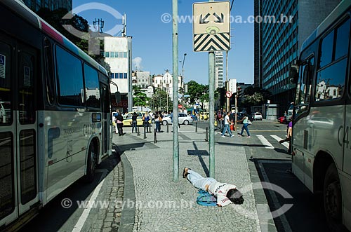 Subject: Homeless man sleeping near the intersection of Nilo Pecanha Avenue with Rio Branco Avenue / Place: Rio de Janeiro city - Rio de Janeiro state (RJ) - Brazil / Date: 10/2013