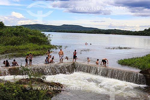 [+] adult, [+] bather, [+] Caldeirao Dam, [+] cascade, [+] dam, [+] green area, [+] landscape, [+] man, [+] nature, [+] Northeast Region, [+] people, [+] person, [+] Piaui, [+] rock, [+] rock formation, [+] vegetation, [+] woman, [+] tree