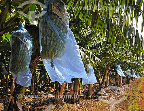 Subject: Banana bunches protected against birds / Place: Paranapanema city - Sao Paulo state (SP) - Brazil / Date: 04/2014