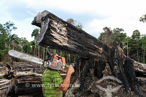 Subject: Man with chainsaw - BR-174 Road / Place: Ramal do Pau Rosa - Manaus city - Amazonas state (AM) - Brazil