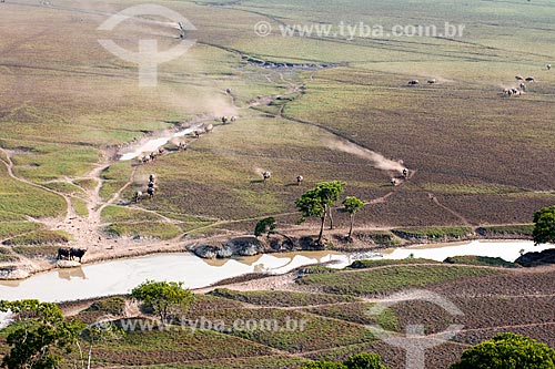 Subject: Herd of buffalo on the banks of Guapore River near to Pau DOleo Farm and the Biological Reserve of Guapore / Place: Sao Francisco do Guapore city - Rondonia state (RO) - Brazil