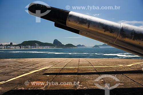 Subject: Cannon - old Fort of Copacabana (1914-1987), current History Museum Army with the Sugar Loaf in the background / Place: Copacabana neighborhood - Rio de Janeiro city - Rio de Janeiro state (RJ) - Brazil