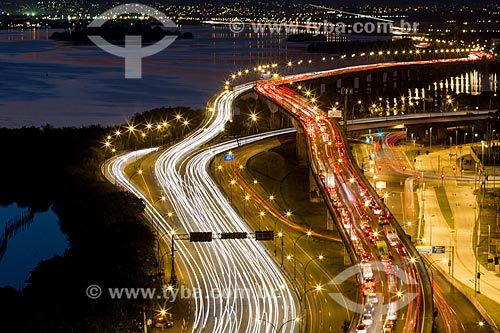 [+] expressway, [+] Joao Goulart President Expressway, [+] highway, [+] road, [+] Linha Vermelha, [+] RJ-071, [+] Fundao Island, [+] night, [+] illumination, [+] light, [+] electric light, [+] movement, [+] traffic jam, [+] congestion, [+] Southeast Region, [+] road transport, [+] traffic, [+] transit, [+] asphalt, [+] road transportation, [+] automobile, [+] vehicle, [+] car, [+] building, [+] lamppost, [+] urban mobility, [+] Guanabara Bay, [+] speed, [+] transport, [+] bay