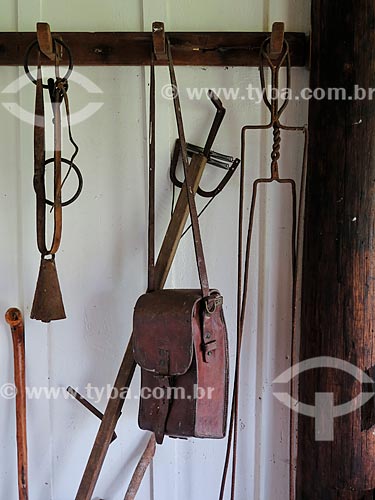 Subject: Tools of the pampas (bell, skewer, leather purse and walking stick) - country home / Place: Sao Francisco de Paula city - Rio Grande do Sul state (RS) - Brazil