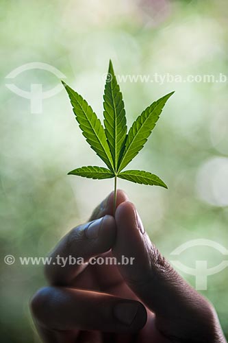 Subject: Detail of leaf of marijuana (Cannabis sativa)