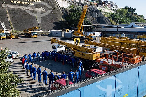 Subject: Workers doing morning prayer in Transreta Cranes business - near to footbridge 21 of Avenue Brazil / Place: Parada de Lucas - Rio de Janeiro city - Rio de Janeiro state (RJ) - Brazil