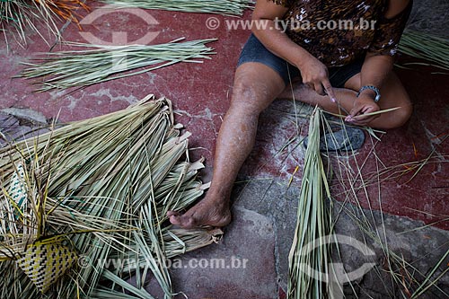 Subject: Woman of Horto Hill making handmade bags using straw of carnauba palm / Place: Juazeiro do Norte city - Ceara state (CE) - Brazil