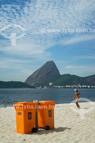Subject: Garbage can - Flamengo Beach waterfront with the Sugar Loaf in the background / Place: Flamengo neighborhood - Rio de Janeiro city - Rio de Janeiro state (RJ) - Brazil