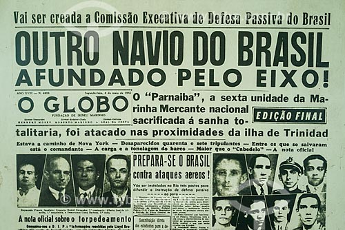 Subject: Front page of O Globo newspaper of May 4, 1942 - Reproduction of collection of Monument to the dead of World War II / Place: Gloria neighborhood - Rio de Janeiro city - Rio de Janeiro state (RJ) - Brazil