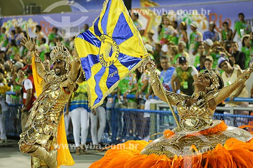 Subject: Parade of Gremio Recreativo Escola de Samba Unidos da Tijuca Samba School - Flag-bearer couple - Plot in 2015 - A short story marked in the time: the swiss vision of Clovis Bornay / Place: Rio de Janeiro city - Rio de Janeiro state (RJ) - Brazil
