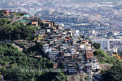 Subject: View of Morro dos Prazeres slum from Mirante Dona Marta / Place: Santa Teresa neighborhood - Rio de Janeiro city - Rio de Janeiro state (RJ) - Brazil