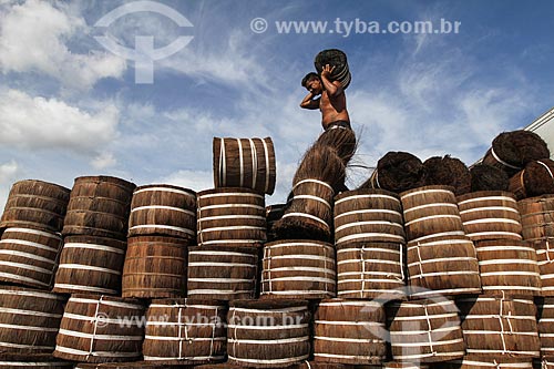 Subject: Loading of Piassava (Attalea funifera) - Barcelos city port / Place: Barcelos city - Amazonas state (AM) - Brazil
