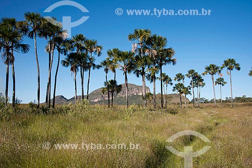Subject: Buritis (Mauritia flexuosa) - Maytrea Garden with the Baleia Mountain in the background / Place: Alto Paraiso de Goias city - Goias state (GO) - Brazil