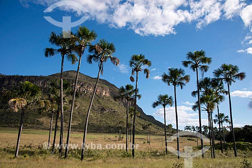 Subject: Buritis (Mauritia flexuosa) - Maytrea Garden with the Buracao Mountain in the background / Place: Alto Paraiso de Goias city - Goias state (GO) - Brazil