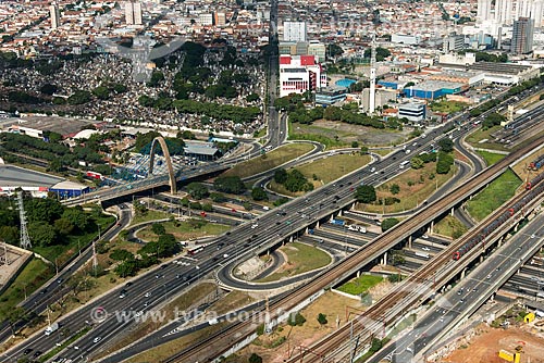 Subject: Aerial photo of Alcantara Machado Avenie over Salim Farah Maluf Avenue and the Pires do Rio Viaduct with Quarta Parada Cemetery in the background / Place: Sao Paulo city - Sao Paulo state (SP) - Brazil